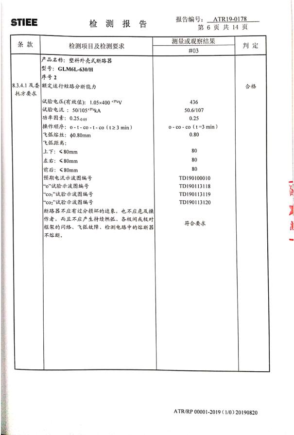 GLM6E-系列塑料外壳式断路器自愿认证证书