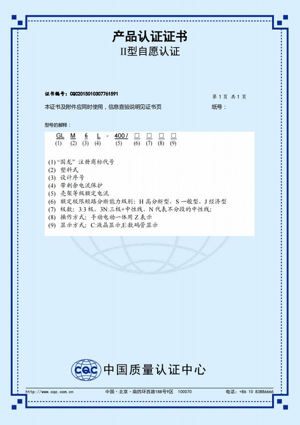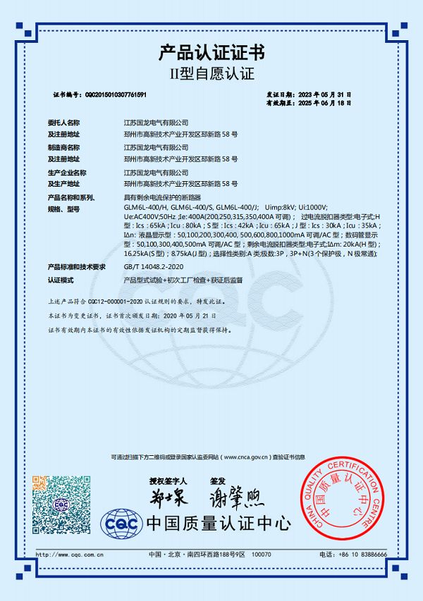 GLM6L-400HSJ自愿认证证书