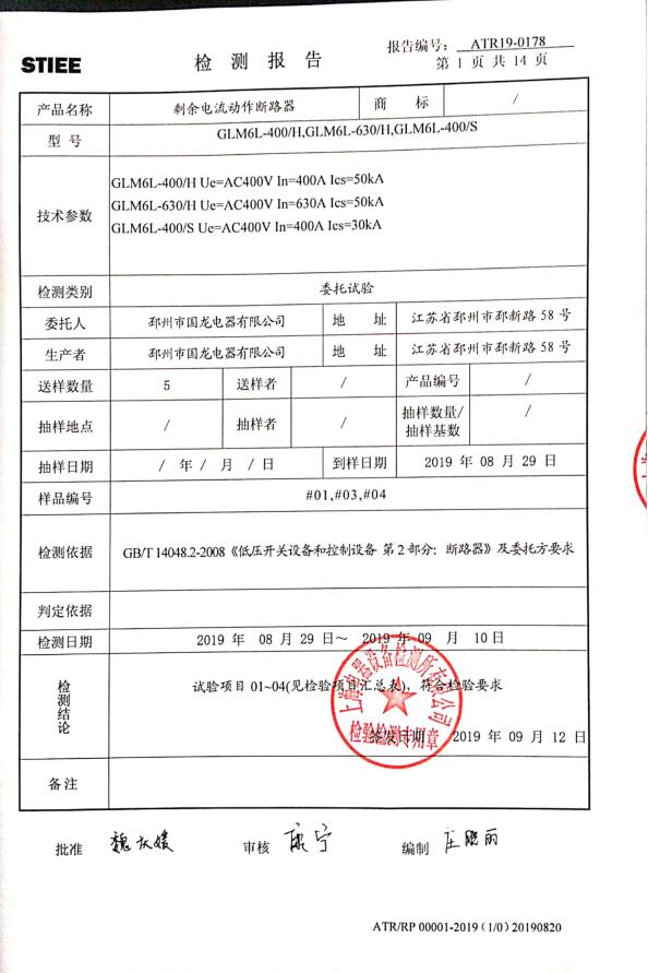GLM6E-系列塑料外壳式断路器自愿认证证书