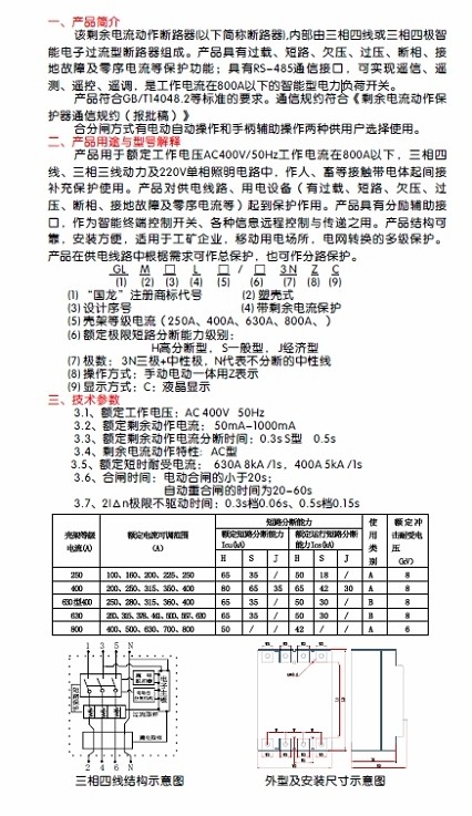 GLM30L-400/□□□□剩余电流动作断路器(数码管显示型)