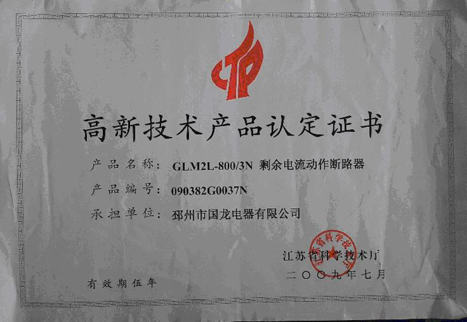 高新技术产品证书